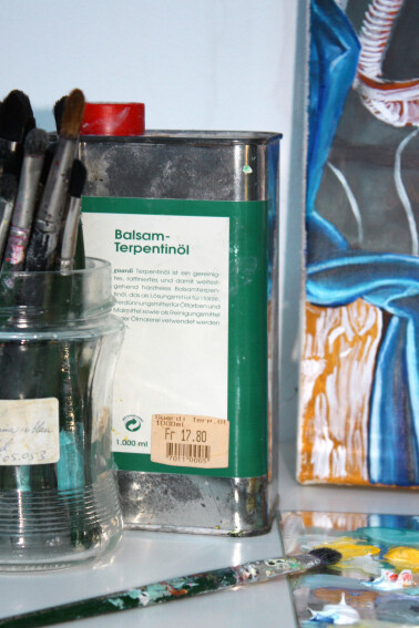 - En raison de la forte évaporation de l’essence de térébenthine, le risque qui en découle et la toxicité élevée lors d’une ingestion, il est préférable d’utiliser des succédanés pour le nettoyage des pinceaux ou pour diluer des peintures.