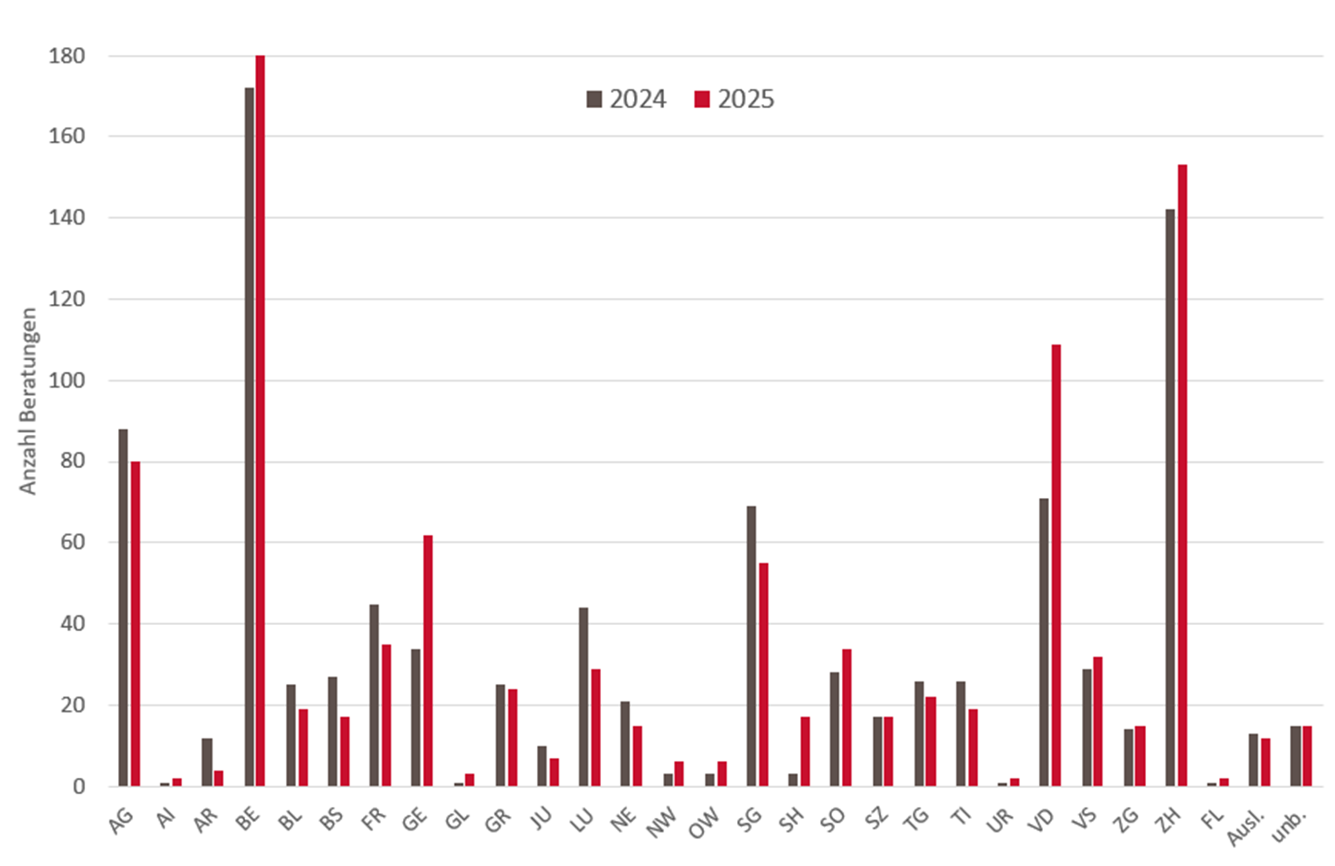 Anzahl Beratungen zu Pilzvergiftungen nach Kanton im Vergleich zum gleichen Zeitpunkt des Vorjahres