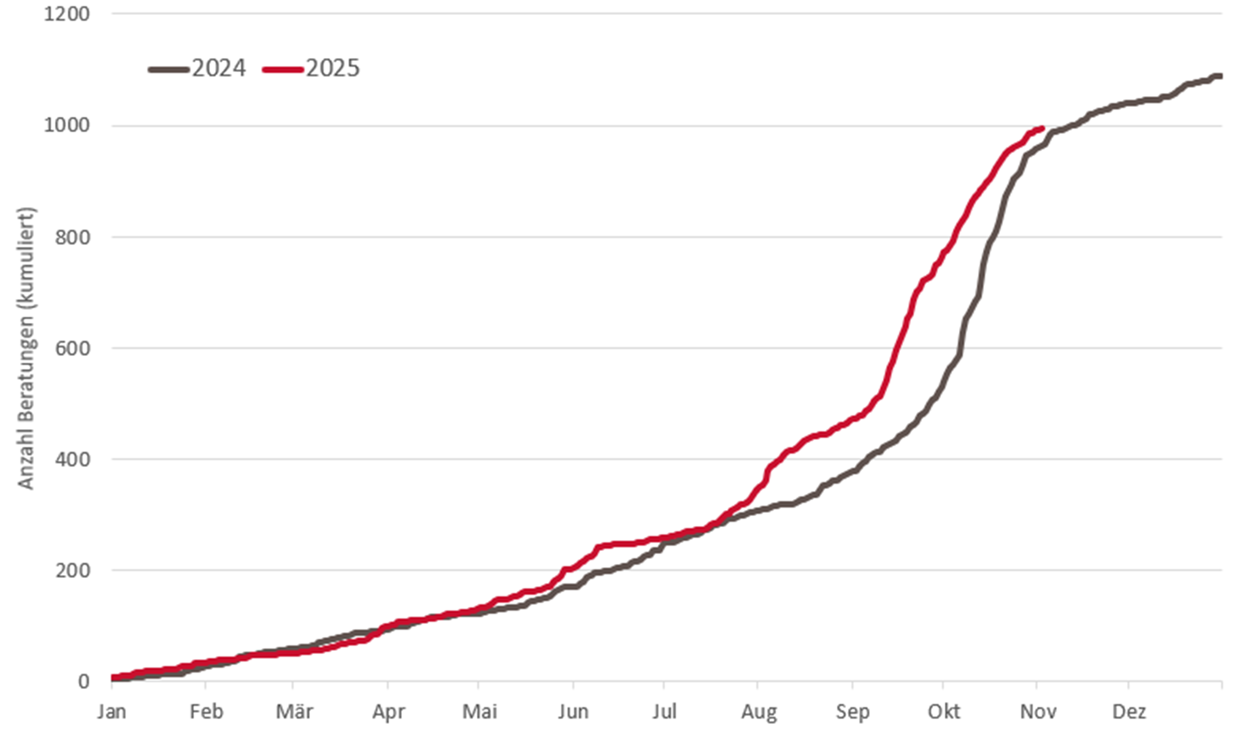 Anzahl Beratungen zu Pilzvergiftungen (kumulativ) im Vergleich zum Vorjahr
